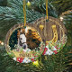 Photo de cheval personnalisée ornement de Noël avec la photo de votre cheval en bois, éléments d'or, couronne de Noël et une chaussure de cheval d'or sur le dos.