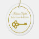 Cet ornement de Noël chic immobilier est fait sur mesure avec votre société immobilière sous le nom de l'agent immobilier en typographie or. Une belle clé dorée à l'ancienne ajoute une touche classique à cet élégant cadeau de ménage.