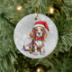 Sur le devant de cet ornement de Noël, on voit l'image d'un chien Beagle marron et blanc portant un chapeau de Père Noël et enveloppé de lumières de Noël colorées. L'image est placée contre un arrière - plan festif de livres d'argent. Le dos de l'ornement a le même arrière - plan avec le texte personnalisé qui dit actuellement "Joyeux Noël Bonne Année", la date et votre signature. Idéal pour tous, mais surtout pour les fans Beagles.