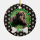 Personnalisez ce ornement photo empreinte de patte avec la photo de votre animal de compagnie.Il y a un arrière - plan empreinte de patte dans les couleurs festives de vacances. Il y a un os où vous personnalisez le nom de votre animal.