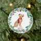 Décorez votre arbre ou offrez un cadeau spécial cette saison de vacances avec cet élégant récupérateur d'or de Noël Joyeux dans un ornement design de couronne de noël, et décoration assortie. Cet ornement de noël, récupérateur d'or, présente un chien d'aquarelle dans une couronne verte et rouge avec des saints et des baies. Personnalisez avec nom avant, il y a un an. Cet ornement de noël de récupérateur d'or sera un favori parmi les amateurs de récupérateurs d'or, amoureux de les chiens et amoureux des animaux. Visitez notre collection pour assortir les cartes de noël, la décoration de la maison et les cadeaux d'or. DROIT D'AUTEUR © 2020 Judy Burrows, Black Dog Art - Tous droits réservés. Chien de Noël Personnalisé Animaux de Noël Golden Retriever Ornement en céramique