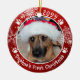 Créez un ornement photo personnalisé pour un chiot ou un chien avec cet ornement en céramique ronde rouge et blanche avec 2 photos (une de chaque côté), des empreintes de chien et des flocons de neige avec votre texte personnalisé (l'exemple montre le premier Noël du nom). La conception est dupliquée sur les deux côtés avec les mêmes photos ou différentes. OPTIONS : D'autres styles ornementaux sont disponibles sur la page de commande (tous ne sont pas recto verso) ou le design peut être transféré à d'autres styles ornementaux. ASSISTANCE : Pour obtenir de l'aide sur la modification du design, la personnalisation, le changement de couleur ou le transfert du design vers un autre produit, contactez le concepteur AVANT DE COMMANDER via l'onglet MESSAGE Conversation Zazzle ci-dessous ou envoyez un courriel à makeitaboutyoustore@gmail.com.
