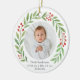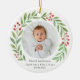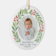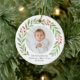 Célébrez le cadeau le plus précieux de tous avec ce magnifique ornement de Noël du Bébé. Un souvenir intemporel, ce design élégant présente une délicate couronne d'aquarelle de saint festif, encadrant parfaitement votre photo préférée de votre nouveau-né. Annoncez l'arrivée de votre petit et commémorez cette étape magique en personnalisant l'ornement avec toutes ses statistiques de naissance importantes : son nom complet, la date de naissance, l'heure d'arrivée et le poids à la naissance. Ce n'est pas seulement une décoration, c'est un souvenir chéri de leur toute première période de vacances qui sera chéri toute une vie. Il fait un cadeau parfait et sincère pour les nouveaux parents, grands-parents et parrains de s'accrocher à l'arbre année après année.