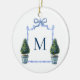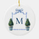 Apportez un charme intemporel à votre décor de vacances avec cet ornement de Noël Monogrammé de Chinoiserie Topiary Tree. Doté d'un arbre topiaire aquarelle décoré de cordes bleues de chaque côté d'une crête de bambou avec votre initiale personnalisée, il s'agit d'un design classique avec une touche de préppie. Accrochez-le sur votre sapin de Noël pour une touche de tradition qui vous semble unique, ou offrez-le à ceux qui vous sont chers pour un souvenir réfléchi. Une belle façon de célébrer la saison avec style personnel.