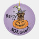 C'est l'heure du plaisir d'Halloween ! Allez Trick ou Traitez avec cette mignonne sorcière de chiot du laboratoire de chocolat, portant un casquette de sorcière, dans un Jack-o-Lantern souriant. Grand cadeau pour les enfants de tous âges qui aiment Labrador Retrievers et Halloween. Joyeux Howl-oween !