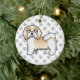 Illustration originale de Destei d'une jolie robe blanche et fawn Bichon Havanais / Chien de race Havanais. L'arrière - plan a un motif d'empreintes de pattes de chien gris.