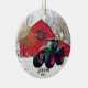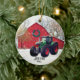 Le tracteur vert préféré d'un fermier est garé devant une vieille grange rouge dans la neige.