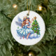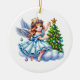 This ceramic ornament is shown with a cute holiday angel art print with a believe print on the back side.