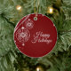 Christmas Party White Stars Red Elegant Ceramic Ornament. Unique, beautiful, stylish design. Easy to be personalized. Font style, size and colors can be changed. Matching items are available.