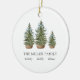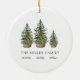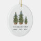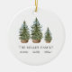 Add a charming touch to your holiday with this personalized ornament featuring a delightful watercolor festive green Christmas tree for each family member adorned with a beautiful blue bow.