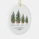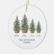 Add a charming touch to your holiday with this personalized ornament featuring a delightful watercolor festive green Christmas tree for each family member adorned with a beautiful blue bow.
