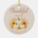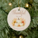 Ajoutez une touche de charme moisson à votre décor de vacances avec cet ornement de Thanksgiving avec ses citrouilles d'aquarelle rustique, des tournesols dorés et des feuilles d'automne. Un accent saisonnier parfait pour les arbres Thanksgiving, des spectacles festifs, ou comme un cadeau unique de conservation pour les amis et la famille. Cet élégant ornement d'automne allie style de ferme et ambiance d'automne, ce qui en fait une belle décoration que vous chérirez année après année.