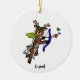 Cupidon et Comet se tirent côte à côte, donc cet ornement a Cupidon avec son arc et la flèche sur un côté et Comet avec un amour qui atteint la lune sur l'autre.