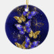 Composition des luxueux papillons saphir et bijoux en or sur arrière - plan bleu texturé.