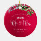 Couronne d'hiver de PixDezines avec feuillage et baies rouges pour un DIY Mr & Mrs dans une police de caractères à pinceau amusante pour la photo du premier Noël de mariage.