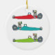 Trois voitures de course traînées à la main dessinée design - véhicules de style dragster avec long corps, gros moteur et roues grasses.