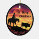 Personnalisez cet Ornement de Noël Occidental "Un des genres" ! Avec une silhouette d'un cowboy qui monte un cheval qui monte un long volant pendant une belle nuit Orange Lune! C'est un Art Design original de l'artiste Kerry Miller. Bon appétit !
