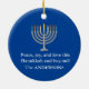 Créez Votre Propre Ornement En Céramique Hanoukka Menorah. Menorah avec neuf bougies et étoile de David sur un festival bleu de lumières arrière - plan sur le devant et l'arrière de l'ornement. Joyeux salutations de vacances et nom de la famille sur le dos. Placez votre propre texte, selon vos souhaits.