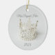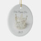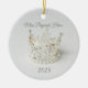 Christmas ceramic ornament is shown in a round shape with a lovely silver crystal and pearl crown photo print.