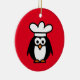 Cute chef cuisinier pingouin dessin sur mesure photo de Noël en céramique ornement. Personnalisez avec du texte personnalisé ou une image photo au dos. Ajoutez vos voeux ou souhaits comme Joyeux Noël ou Joyeux Joyeux Fêtes! Drôle dessin animé avec casquette du chef et ustensiles de cuisine. Téléchargez une photo. Amusant pour petits et grands.