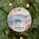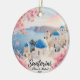 Celebrate a love that spans the globe with this elegant, double-sided ceramic ornament. Featuring a stunning hand-painted watercolor illustration of the iconic blue-domed churches of Santorini, this keepsake is the perfect way to commemorate a destination wedding, a romantic honeymoon, or a dream vacation.