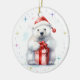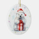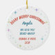 Any little girl would love to have this cute Holiday ornament from her grandparents! The front features an adorable white polar bear wearing a red and white Santa Claus hat, and holding a brightly wrapped Christmas gift. A retro style border of pastel stars surrounds the image. The back of the ornament has the same border with text fields for you to customize. This can easily be changed for a daughter or son from parents, too. Make it say whatever you'd like!