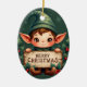 Décoration En Céramique Cute Christmas Elf Holding Merry Sign Green