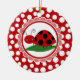 This design feh a cute red and black ladybug on a green leaf with a fun smile and cute curly antenna