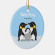 Personnalisez cet ornement avec l'illustration d'une famille de pingouins avec le bébé poussin de pingouin dans l'étreinte de ses parents. Joli ornement pour l'hiver et Noël !