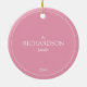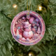 Bring a touch of pastel magic to your tree with this whimsical pink snowman family Christmas ornament. Designed in soft shades of blush, rose, and icy pink, this enchanting ornament features a cheerful snowman surrounded by dreamy winter trees and candy-like swirls — creating a playful, storybook holiday scene. The reverse side offers elegant personalization for your family name and year, making it a heartfelt keepsake or thoughtful holiday gift. Its glossy ceramic finish and delicate pink tones bring a warm, joyful touch to any Christmas tree, perfect for those who love modern yet cozy festive décor.
