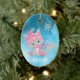 Un adorable petit chaton gris et blanc porte un casquette de flocon rose et une écharpe tandis que des flocons blancs dérivent autour. En bas se trouve le nom de votre enfant en blanc. Tout est posé sur un arrière - plan bleu glacé abstrait. Le dos de l'ornement a le même arrière - plan, quelques flocons de neige, et votre texte personnalisé dans quatre champs. Facile à customiser, et n'importe quelle petite fille adorerait cet ornement de gardien !