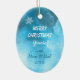 Un adorable petit chaton blanc surplombe un bas de Noël rose flocon. Le chaton porte un arc rose et tient un sucre de canne rayé rouge et blanc. Quelques flocons de neige dérivent autour. Tout est posé sur un arrière - plan bleu glacé abstrait. Le dos de l'ornement a le même arrière - plan, quelques flocons de neige, et votre texte personnalisé dans cinq champs. Facile à customiser, et n'importe quelle petite fille adorerait cet ornement de gardien !