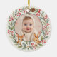 Celebrate a magical milestone with this woodland baby First Christmas personalized photo ceramic ornament. Charming forest inspired illustrations pair with a sweet photo layout, creating a warm and whimsical keepsake for the holiday season. Designed with soft colors, crisp print quality, and a polished finish, this ornament is perfect for gifting or decorating your tree with a touch of woodland charm.