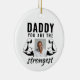 Daddy you are the Strongest Funny Father Photo Ceramic Ornament. The strongest dad funny ornament with drawing of strong arms. Add your photo. The text is black typography.