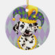 Le chiot dalmatien mignon, habillé dans le casquette et les perles de fête de farceur, préparent pour l'amusement sur le mardi gras ou à tout autre moment. Grand cadeau pour vous-même et votre famille et amis Dal-affectueux.