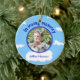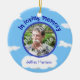 Cet ornement commémoratif en céramique fait sur commande a la pièce pour le votre aimé son image au centre. Il indique "dans la mémoire affectueuse" sur un ciel bleu avec des nuages à l'arrière-plan.