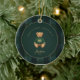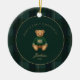 Dark Green Tartan Plaid Babys First Christmas Ceramic Ornament - with a classic teddy bear, Baby's first Christmas ornament, baby's name and year, surrounded by a border of classic dark green tartan plaid. A photo of your bundle of joy is featured on the other side in full bleed. What a wonderful keepsake this ornament would make.