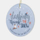 Célébrez la saison des Fêtes avec ce ornement de Noël personnalisable qui présente une illustration fantaisiste d'un enfant chevauchant une traîneau sur une journée d'hiver enneigée, associée à une élégante typographie de script qui dit, "Dashing Through the Snow." Modifiez ce design en ajoutant votre propre texte à l’avant et à l’arrière, puis téléchargez une photo préférée pour créer un souvenir unique qui est parfait pour donner en famille ou entre amis.