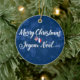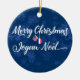 Ornement Décoration de Fêtes Françaises Américaines. Design bilingue, avec texte en français et en anglais, souhaitant un "Joyeux Noël" et un "Joyeux Noël" - comme vous dites Joyeux Noël en français. Parfait si vous avez des ancêtres français, ou si vous êtes français et que vous vivez aux Etats-Unis, ou si vous avez de la famille et des amis dans les deux pays ! Le design présente des billes de vacances avec des drapeaux des deux pays.