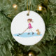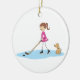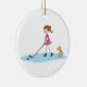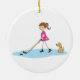 Dessin jouant au hockey sur l'étang pendant que son chien regarde.