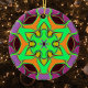 Cette fleur de mandala funky est décorée de vert, d'orange et de violet dans un style de dessin animé. Des visuels géométriques trippy pour l'hippie moderne ou amoureux de couleurs vibrantes!