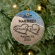 Ajoutez facilement vos propres noms personnalisés ou n'importe quel texte (exemple illustré dit : "Juste marié" avec les noms de la mariée et du marié dans le coeur et la date) pour personnaliser ce magnifique ornement rond populaire en céramique avec une photo originale de deux coeurs écrits dans le sable le long de l'eau bleue de l'océan pour signifier amour et romance. Grand concept pour l'amour, les voyages, et l'été à venir sauvent les mariages de date. Un ornement amusant, mignon, personnel et unique pour donner à cette personne spéciale, petite amie ou petit ami, mariée et mariée ou tout couple amoureux. Personnalisez-vous pour la Saint-Valentin ou simplement pour dire "Je vous aime" n'importe quel jour !