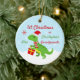 Célébrez la naissance d'un nouveau petit-enfant Noël avec ce joli dessin animé Baby Dinosaur T-Rex ( Tyrannosaurus Rex) ornement de vacances qui présente un dessin animé vert bébé dinosaure tenant un cadeau de Noël de fête rouge festif. Personnalisez cet ornement magique en modifiant le nom et l'année de naissance du bébé. Peut aussi être customisé en changeant grand-parents à grand-mère, grand-père, Nanna, Nana, Nan Granny tante, oncle. 1er Noël peut également être modifié si vous souhaitez avoir 2ème ou 3ème Noël ou autre chose pour en faire une décoration spéciale xmas arbre. Idéal pour donner comme cadeau aux grands-parents ou pour acheter comme gardien.