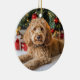 Cet adorable ornement de Noël, avec un Goldendoodle couché sous un arbre de Noël, est un cadeau merveilleux pour tout amateur de Doodle.