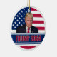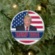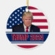 Trump 2024 American Flag Ornament Bordure blanche, American Flag Arrière - plan Back is Blue with Stars. Trump 2024, présenté en blanc.