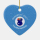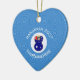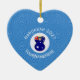 Un ange porte le drapeau de l'Australie pour son décor Hanoukka tout en volant dans un cercle de carrés blancs. L'arrière - plan est un carré bleu et grossier. Conçu spécialement pour les familles australiennes de religion mixte. Ajoutez un nom pour un look personnalisé. Ajoutez l'année de personnaliser. Ou, changez le texte de ce ornement en céramique de forme cardiaque pour votre propre message Hanoukka.