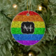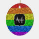 Personnalisez l'ornement des arbres de Noël avec votre initiale et votre nom. Un drapeau LGBT scintillant dans une parties scintillant vibrante rouge, orange, jaune, vert, bleu et violet brille. *photo de scintilles pas de parties scintillant réelle!