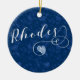 Drapeau Rhodes dans un coeur, avec Rhodes en police scriptée, décoration de Noël.