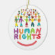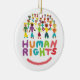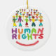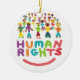 Le dessin de Human Rights montre une variété de gens célébrant l'humanité, l'amitié et l'égalité, avec un grand slogan "Human Rights" ci-dessous. Un message clair de soutien à un monde équitable.