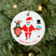 Amusant ornement de Noël pour commémorer une année de quarantaine et de distanciation sociale avec un cool rétro branché, le Père Noël, un bonhomme de neige et un renne portant des masques faciaux. D'un côté vous pouvez personnaliser le texte "Noël 2020" et de l'autre vous pouvez customiser avec un prénom ou un nom de famille.
